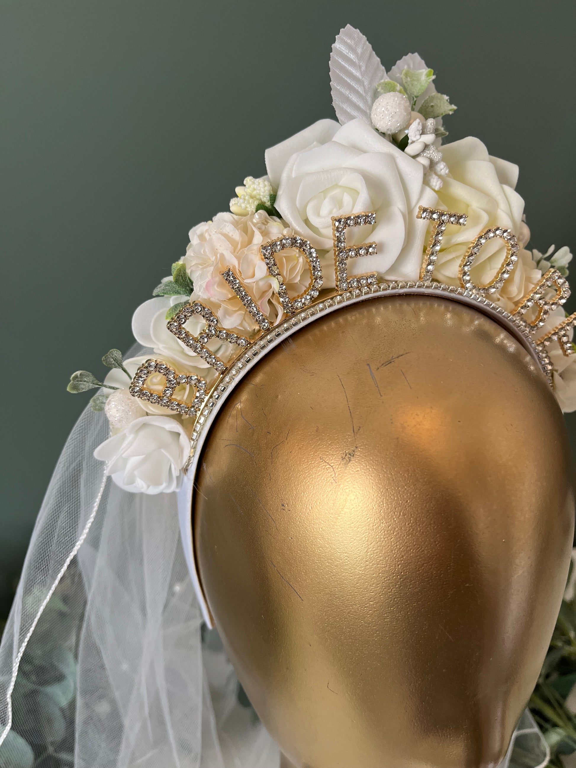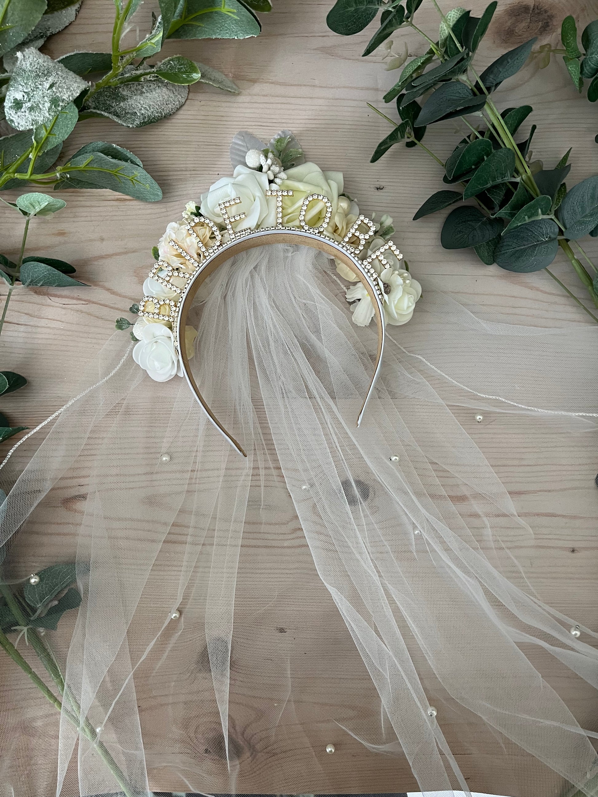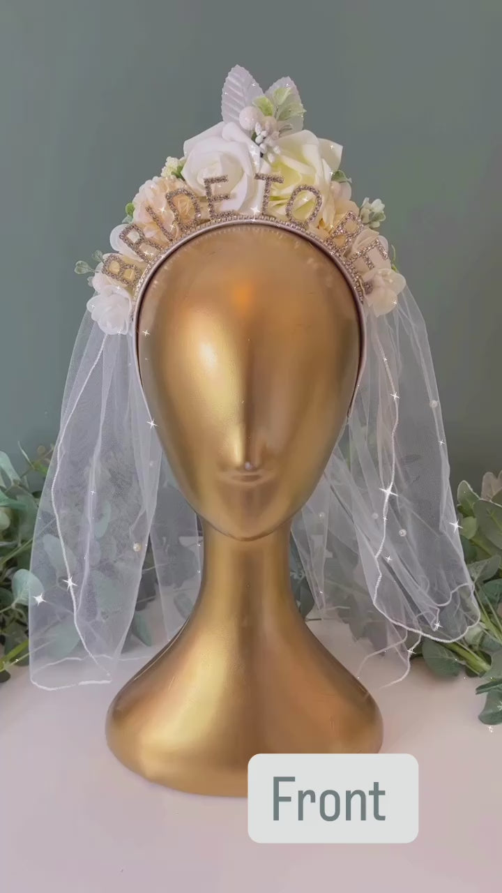 Bride to Be Headband with or without Veil – Floral Crown Bachelorette Tiara