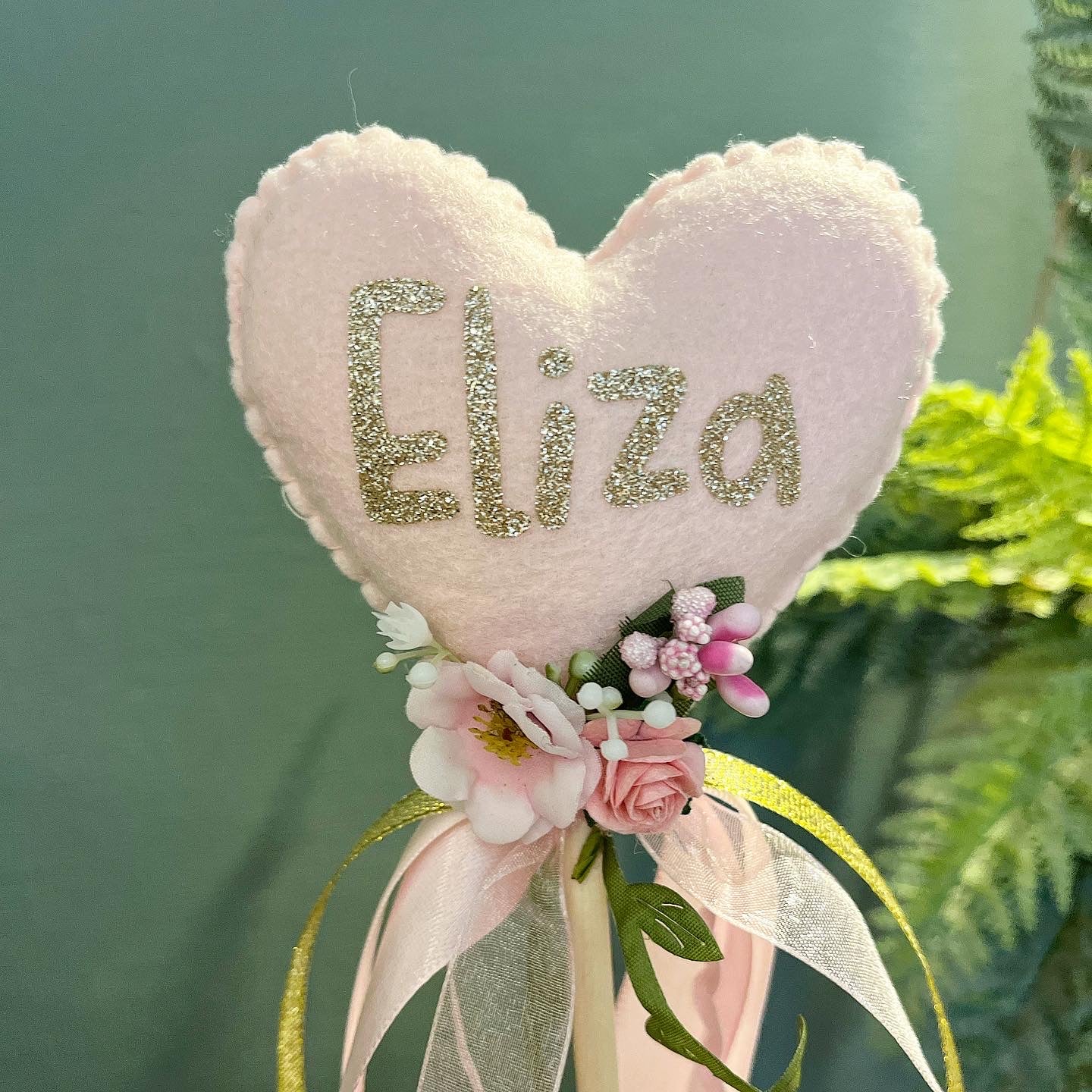 Heart wands finished with matching flowers and a variety of matching ribbons perfect for a Valentine’s present or for Flower Girls.