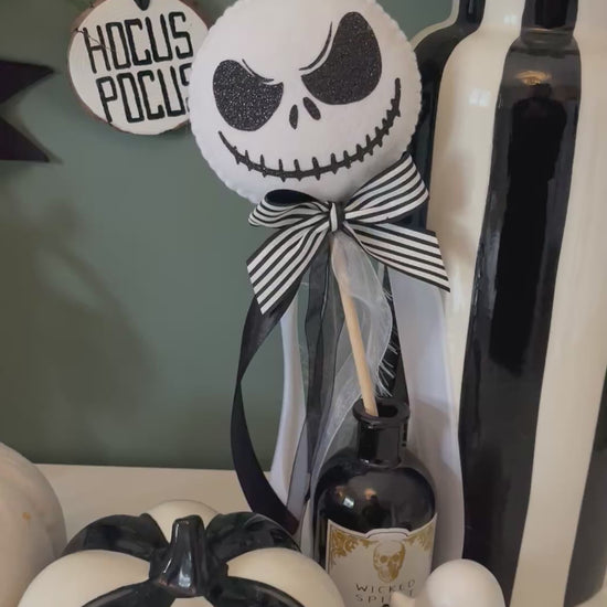 Jack Skellington wand finished with a variety of matching ribbons perfect for any Nightmare before Christmas lover!
