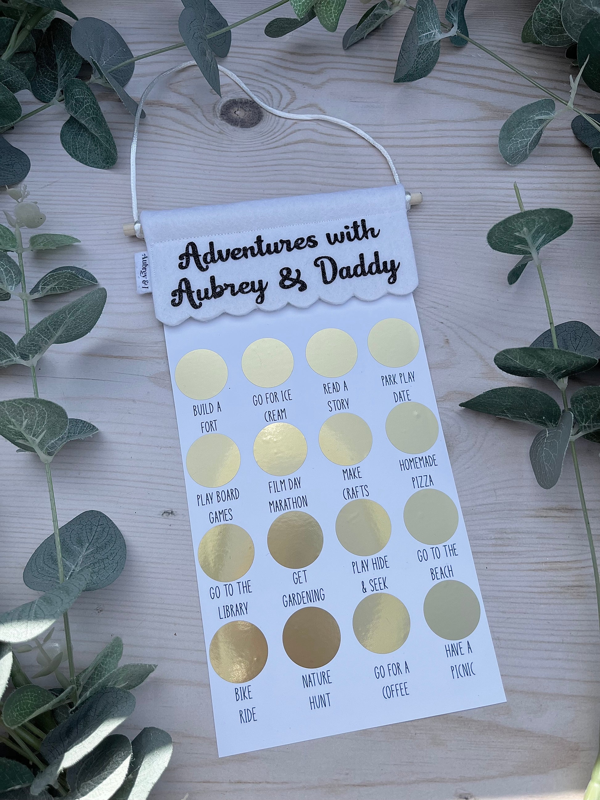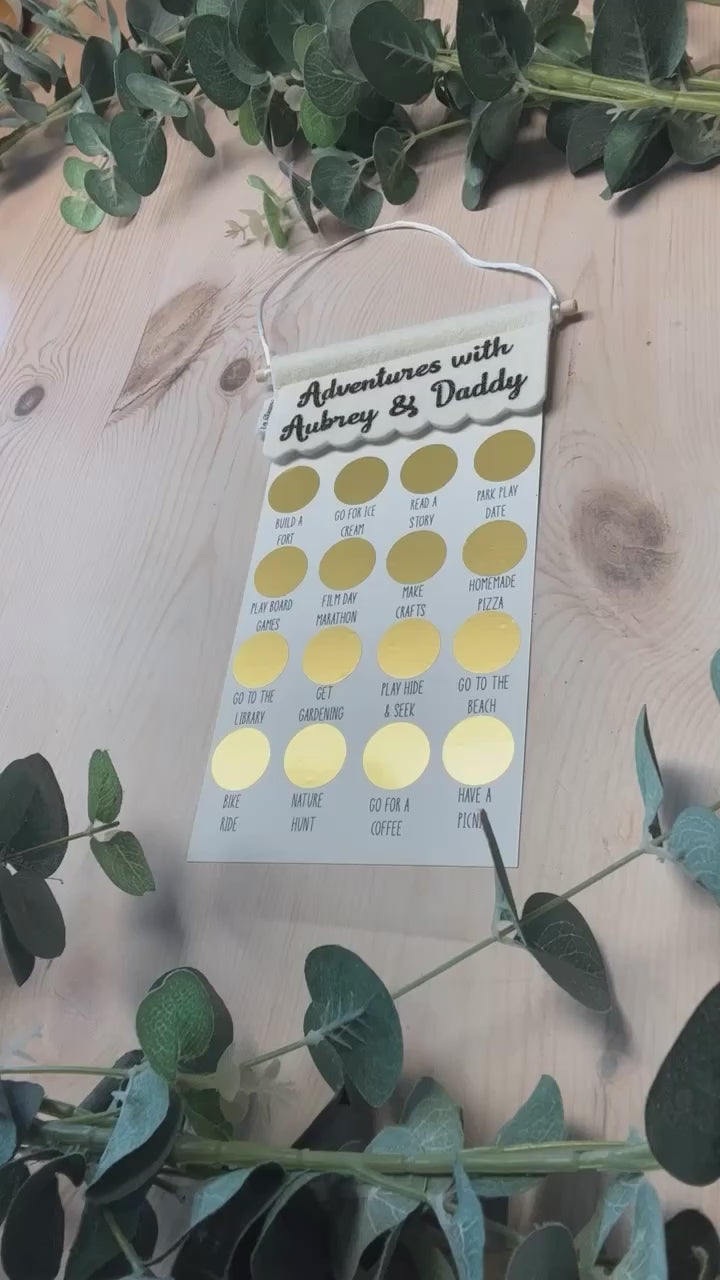 Father’s Day Magnetic Photo Frame© personalise with any wording in either black or gold writing. The scratch poster includes 16 different activities for the kids to do with their dads, grandads or father figures in their lives. They are all cheap and cheerful and perfect for all age groups.